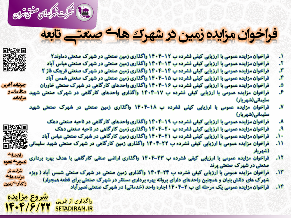 فراخوان مزایده زمین در شهرک های صنعتی تابعه - شهریور ماه 1404 1404/06/22 - 13:54 - تعداد بازدید: 883 - تعداد بازدیدکننده: 516 - کد خبر : 34489 - گروه خبری : گروه مناقصات و مزایدات,گروه آرشیو تمام اخبار استان - تعداد نظرات : 0