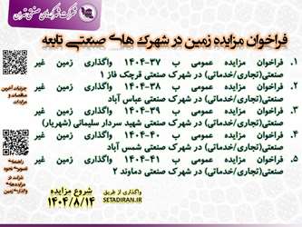 .3فراخوان مزایده عمومی ب 39-1404 واگذاری زمین غیر صنعتی(تجاری/خدماتی) در شهرک صنعتی شهید سردار سلیمانی (شهریار)