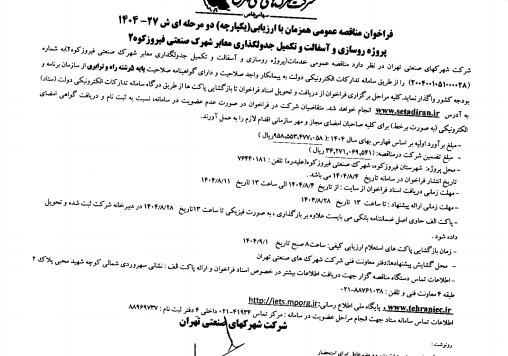 فراخوان مناقصه عمومی پروژه روسازی و آسفالت و تکمیل جدول گذاری فیروزکوه 2