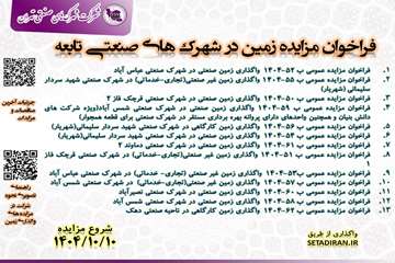 واگذاری زمین تجاری/ صنعتی / کارگاهی در شهرک ها و نواحی صنعتی تابعه 10 دی 1404 1404/10/14 - 09:51 - تعداد بازدید: 499 - تعداد بازدیدکننده: 283 - کد خبر : 37244 - گروه خبری : گروه مناقصات و مزایدات,گروه آرشیو تمام اخبار استان - تعداد نظرات : 0